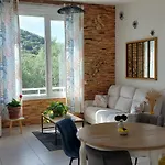 De 1-slaapkamer Maison T3 Duplex Avec Jacuzzi Villa ligt op 4-km afstand van Peaks of Dreams en nodigt gasten uit om te ontspannen op een terras.